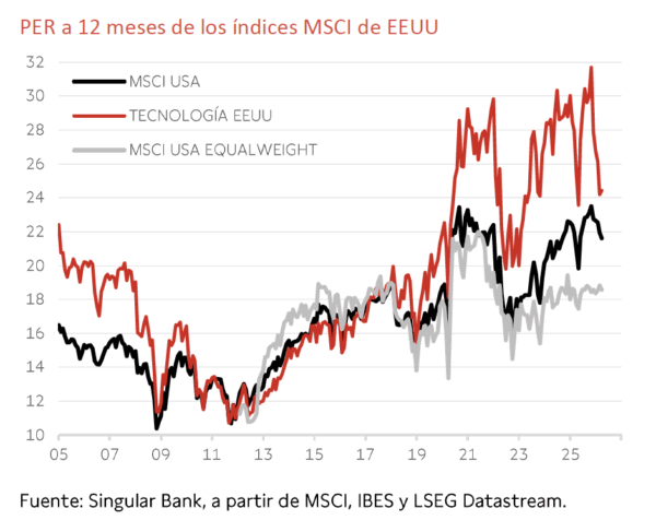 En resumen, el ajuste del sector tecnológico de EEUU ha llevado las valoraciones a niveles atractivos en un contexto de sólido crecimiento de los beneficios, lo que ha llevado a nuestros expertos del área de Inversiones a elevar el sector a Sobreponderar en la estrategia sectorial.